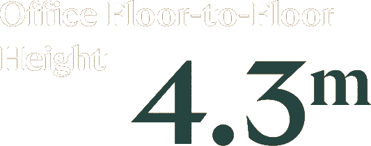 Step into awe-inspiring workspaces where beauty meets innovation. Enjoy serene views of the outdoor green landscape through expansive full-glass, solar-protected windows. These windows surround stunning column-free floors spanning across circa 14,500 square feet, with heights reaching 4.3 metres from floor to floor.